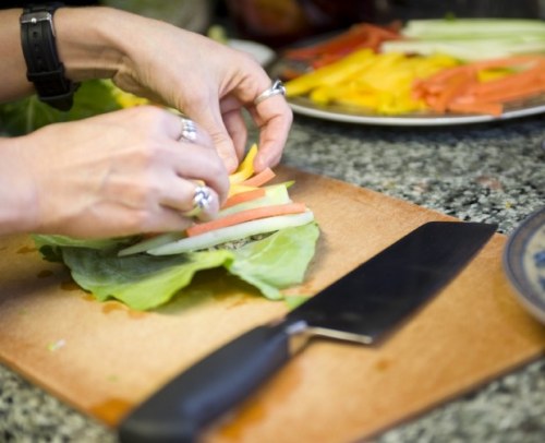 Danielle making Raw Sunflower Seed Hummus Collard Wraps